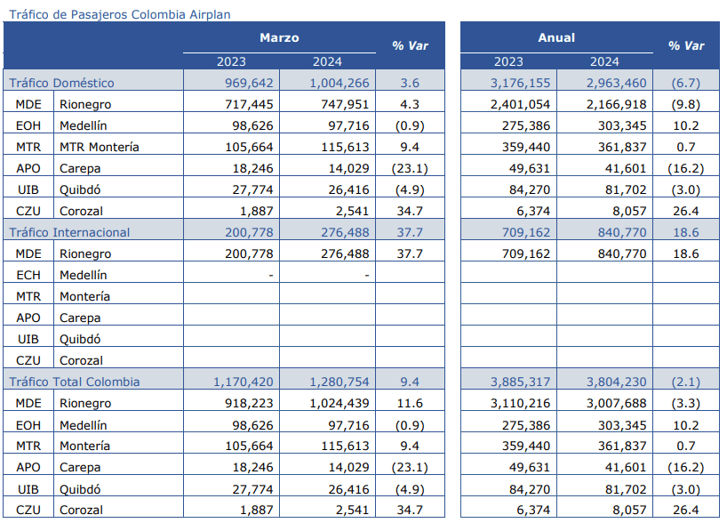Es importante destacar que estas cifras reflejan comparaciones entre el período del 1 al 31 de Marzo de 2024 y del 1 al 31 de Marzo del 2023. Además, se excluyen los pasajeros en tránsito y de aviación general, solo para México y Colombia, y se considera el impacto de la Semana Santa, que ocurrió en marzo de 2024 y en abril de 2023. ASUR