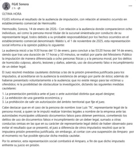 Audiencia de imputación: tras 18 horas, juez dicta medidas por incendio en Waldo’s de Hermosillo