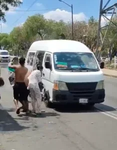 Las imágenes muestran cómo una mujer hace la parada a la unidad para que se detenga. Instantes después, varias personas se acercan con recipientes llenos de agua y los arrojan dentro del vehículo, empapando a quienes se encontraban en el transporte público sin previo aviso.