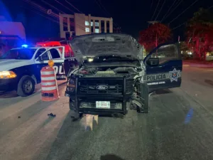 Choque en avenida Huayacán: conductor cambia de carril y choca contra patrulla en Cancún
