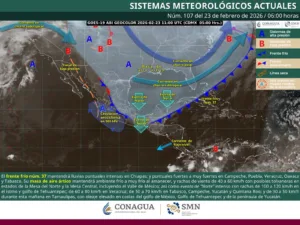 La Capitanía de Puerto de Puerto Juárez, en Cancún, determinó el cierre total a la navegación para todo tipo de embarcaciones, como medida preventiva ante los efectos del Frente Frío número 37 en la región, de acuerdo con el Boletín Meteorológico GOLF: 04-230226 con fecha 23 de febrero de 2026.