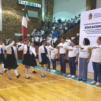 Chetumal, 22 de abril 2024. – En el marco de la Conmemoración del 50 Aniversario de la implementación de los Servicios de Educación Especial en Quintana Roo, se inauguraron una serie de eventos deportivos y culturales, cuya finalidad es crear un espacio de integración, inclusión y sana convivencia para los participantes, y permita a la comunidad valorar las capacidades y habilidades adquiridas y desarrolladas por los alumnos con alguna discapacidad.