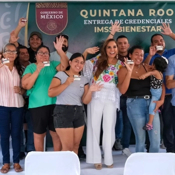 La Gobernadora de Quintana Roo se enlazó, como lo hicieron gobernadoras y gobernadores de México, desde el Centro de Salud Urbano No. 6, en donde entregó las primeras tarjetas de 14 mil 059 personas que ya se afiliaron y son beneficiarios de este programa.