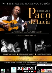 Las entradas para el 1er Festival de Flamenco Fusión “Homenaje a Paco de Lucía” ya están disponibles en el sitio web TusBoletos.mx. La cita es el próximo 28 de febrero en el Teatro de la Ciudad de Playa del Carmen, a las 20:00 horas, para una noche que promete ser inolvidable para los amantes del flamenco y la buena música.