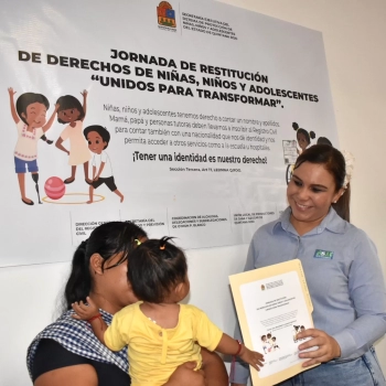Entregan actas de nacimiento a menores de edad, incluyendo a quienes habitan los albergues de la zona cañera