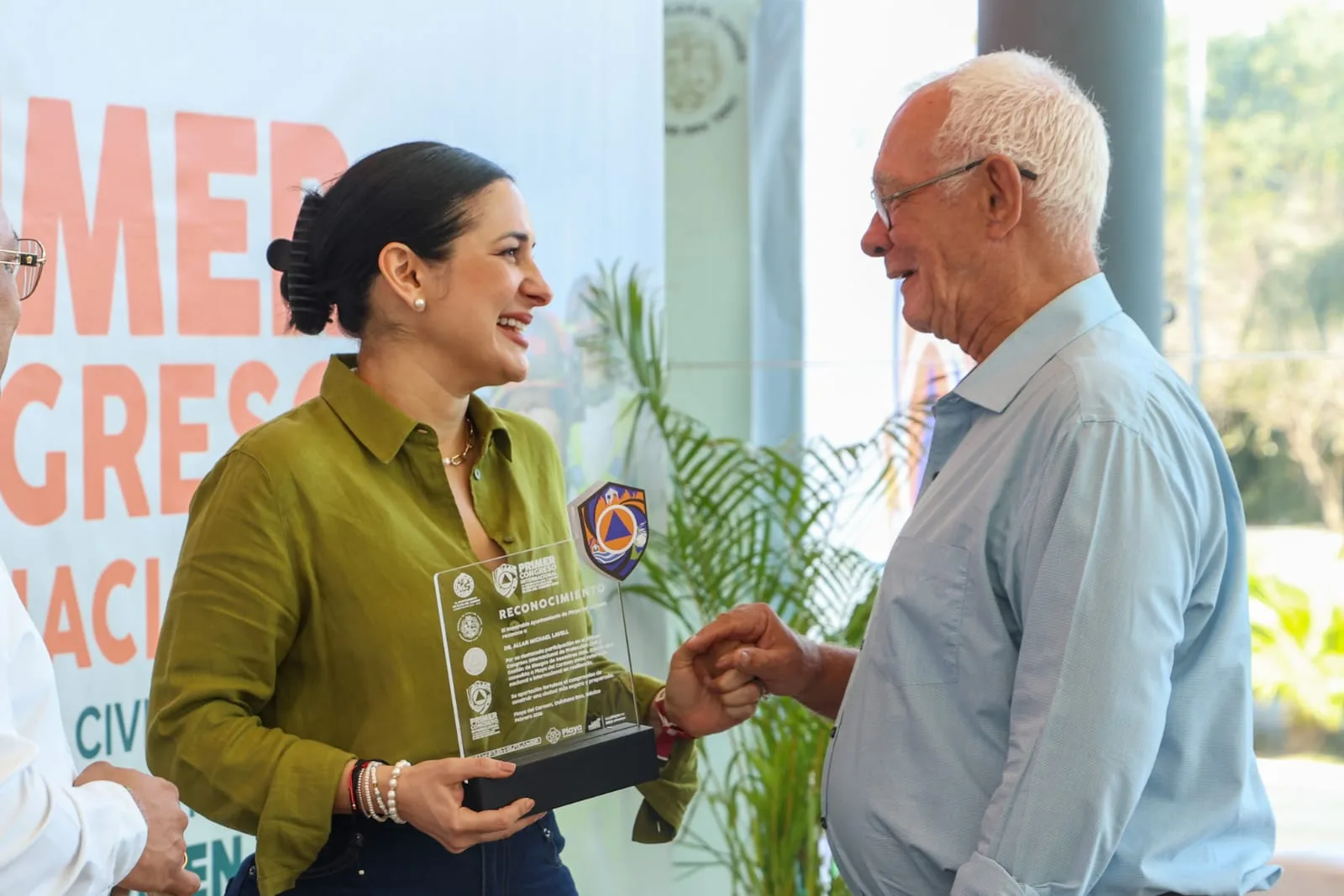 La presidenta municipal, Estefanía Mercado, encabezó la clausura y entrega de reconocimientos a los ponentes, dejando claro que la protección civil ya no es solo cosa de bomberos y alarmas: es un tema de cooperación global.