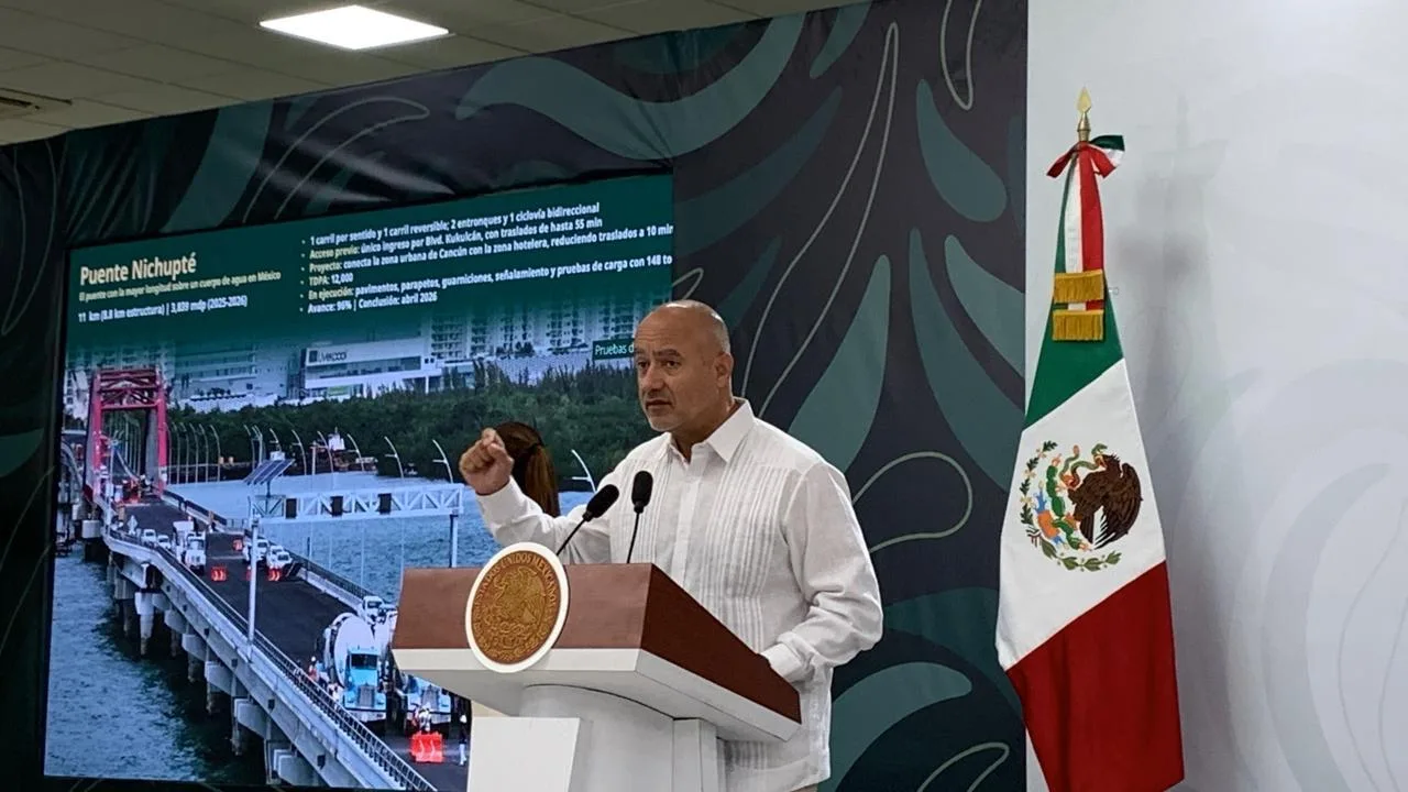 El titular de la SICT también anunció que, una vez concluido el puente, comenzará la construcción del entronque Kukulcán, un nuevo puente con dos carriles por sentido que permitirá mejorar la conexión vial con la zona hotelera.