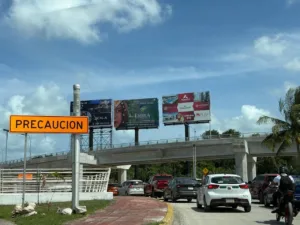 También se identificaron anuncios en la zona que conecta el Boulevard Luis Donaldo Colosio con la zona hotelera, lo que ha generado preocupación por la posible afectación a la visibilidad de los conductores.