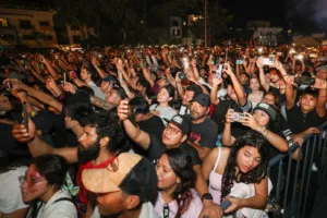 Playa del Carmen, Quintana Roo, 15 de febrero de 2026.— Más de 35 mil personas se dieron cita en la Plaza 28 de Julio y sus alrededores para disfrutar del concierto gratuito de Santa Fe Klan, como parte del Carnaval de Playa del Carmen 2026, en una noche que quedará marcada como una de las más multitudinarias en la historia reciente de esta celebración.