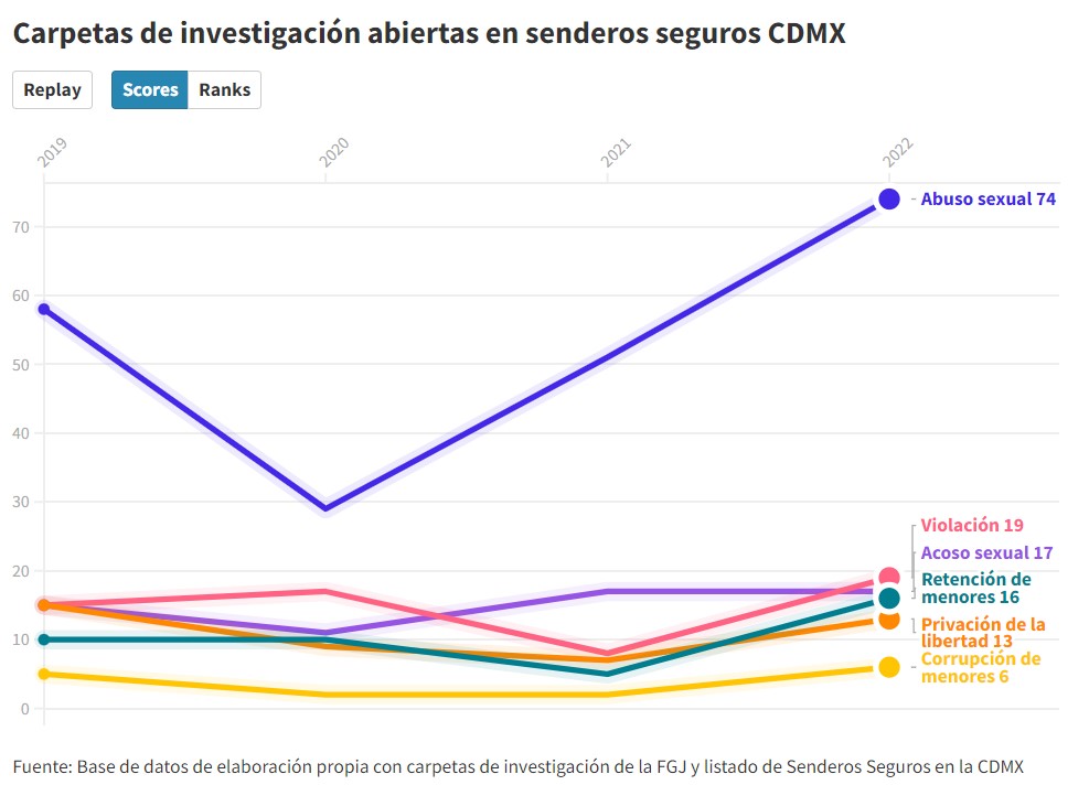 Este medio solicitó al Gobierno de la CDMX, la Secretaría de Obras y la Secretaría de Mujeres capitalinas información sobre el programa “Senderos Seguros” que incluyera un listado de todos los habilitados actualmente, así como el presupuesto de estos para analizarlos y como resultado se descubrió que los delitos no han disminuido y repuntaron con respecto a las cifras previas a la pandemia.