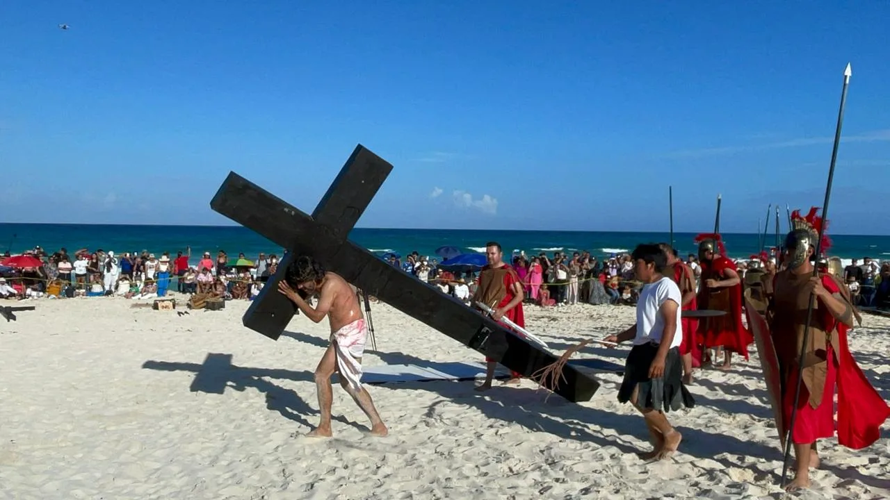 La representación del Viacrucis Viviente en Playa Delfines volvió a reunir a miles de personas durante la Semana Santa, consolidándose como uno de los actos religiosos y culturales más concurridos de Cancún.